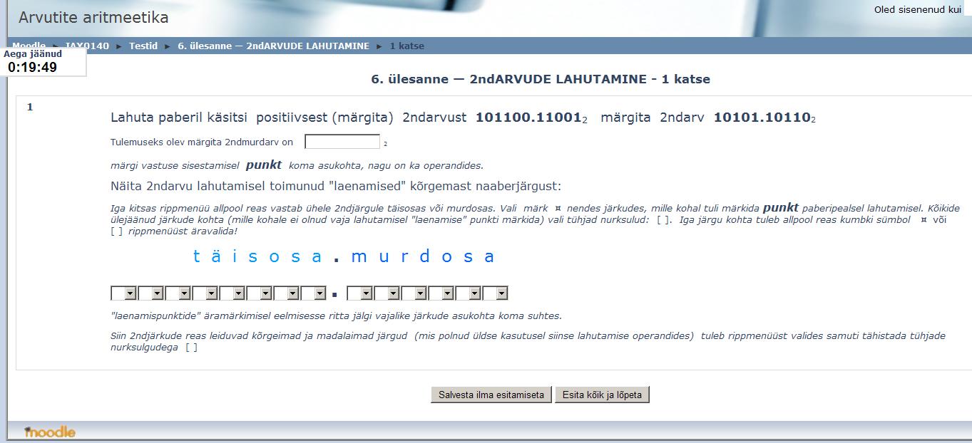 tagasi  Moodle' ülesandekomplekti eelvaade võimaldab juba enne lahendamist tutvuda selles ülesandekomplektis sisalduvate ülesandetüüpidega ja nõuetega, misjuhul pole lahendamisseansi startimise järel vaja enam kulutada lahendamisaja esimesi minuteid   ülesandepüstitusest arusaamiseks.