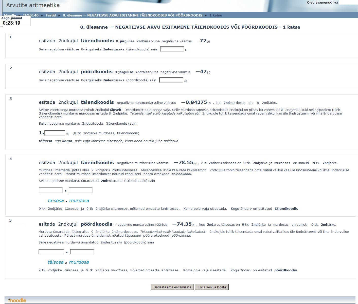 tagasi  Moodle' ülesandekomplekti eelvaade võimaldab juba enne lahendamist tutvuda selles ülesandekomplektis sisalduvate ülesandetüüpidega ja nõuetega, misjuhul pole lahendamisseansi startimise järel vaja enam kulutada lahendamisaja esimesi minuteid   ülesandepüstitusest arusaamiseks.