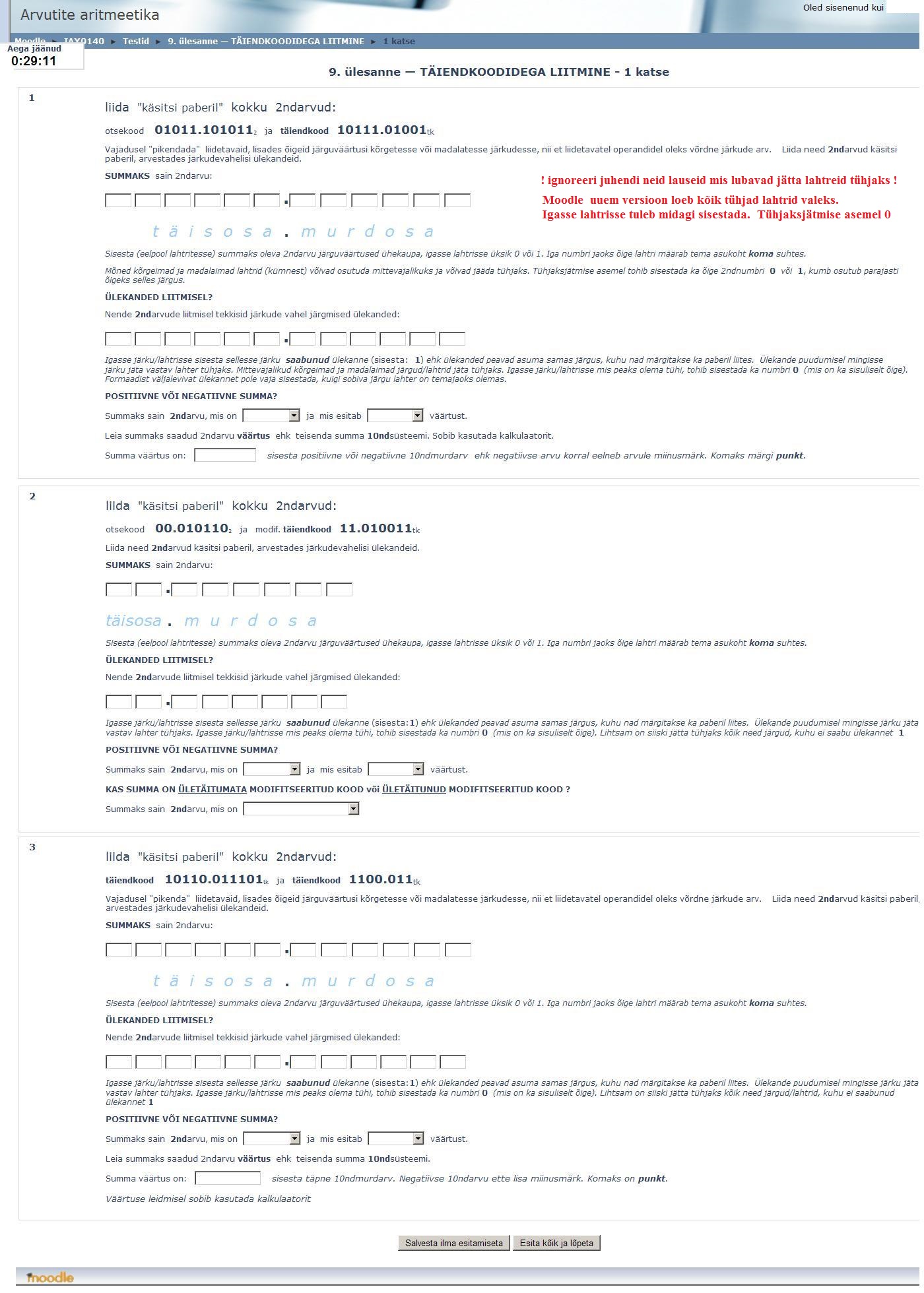 tagasi  Moodle' ülesandekomplekti eelvaade võimaldab juba enne lahendamist tutvuda selles ülesandekomplektis sisalduvate ülesandetüüpidega ja nõuetega, misjuhul pole lahendamisseansi startimise järel vaja enam kulutada lahendamisaja esimesi minuteid   ülesandepüstitusest arusaamiseks.