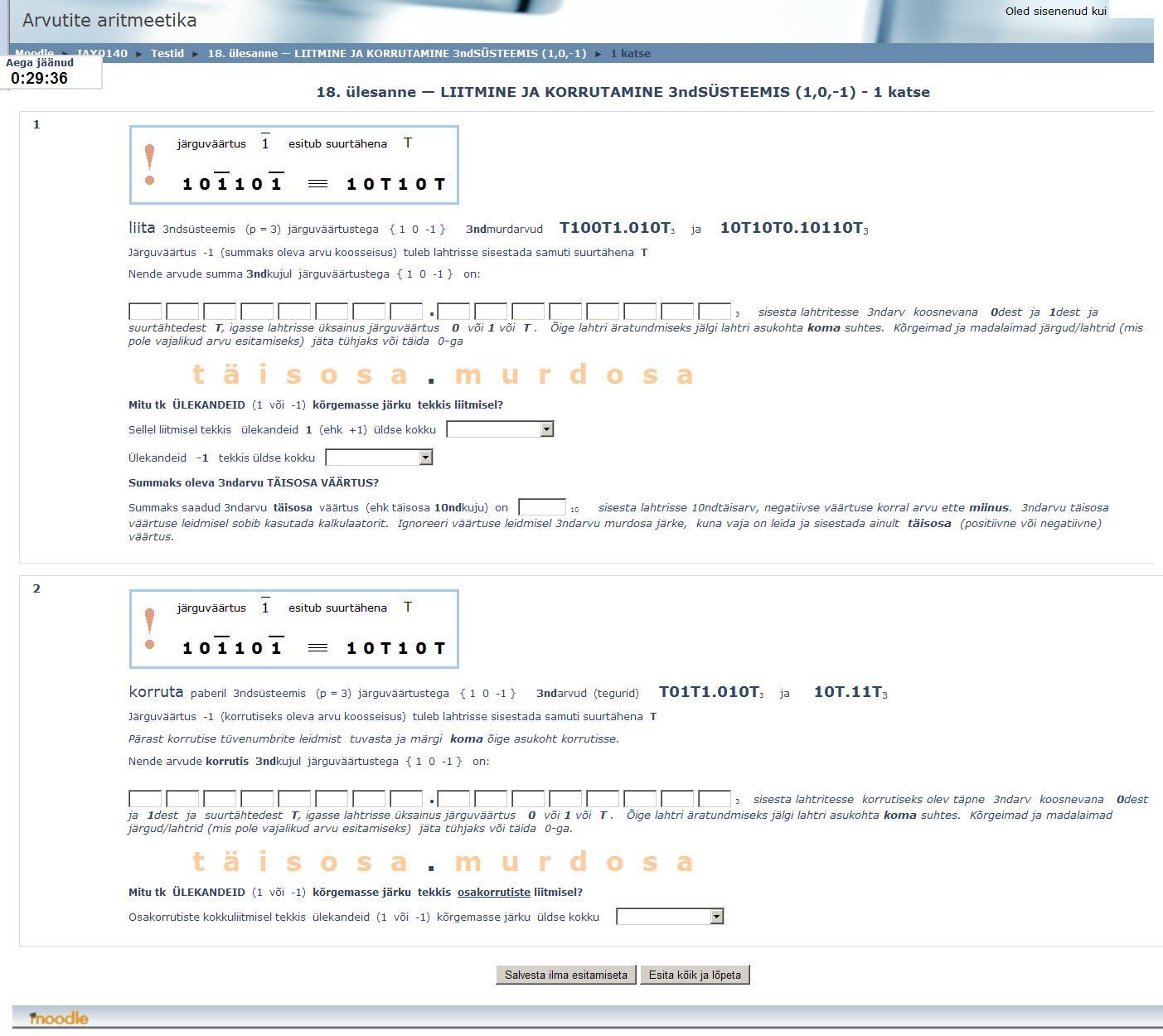 tagasi  Moodle' ülesandekomplekti eelvaade võimaldab juba enne lahendamist tutvuda selles ülesandekomplektis sisalduvate ülesandetüüpidega ja nõuetega, misjuhul pole lahendamisseansi startimise järel vaja enam kulutada lahendamisaja esimesi minuteid   ülesandepüstitusest arusaamiseks.